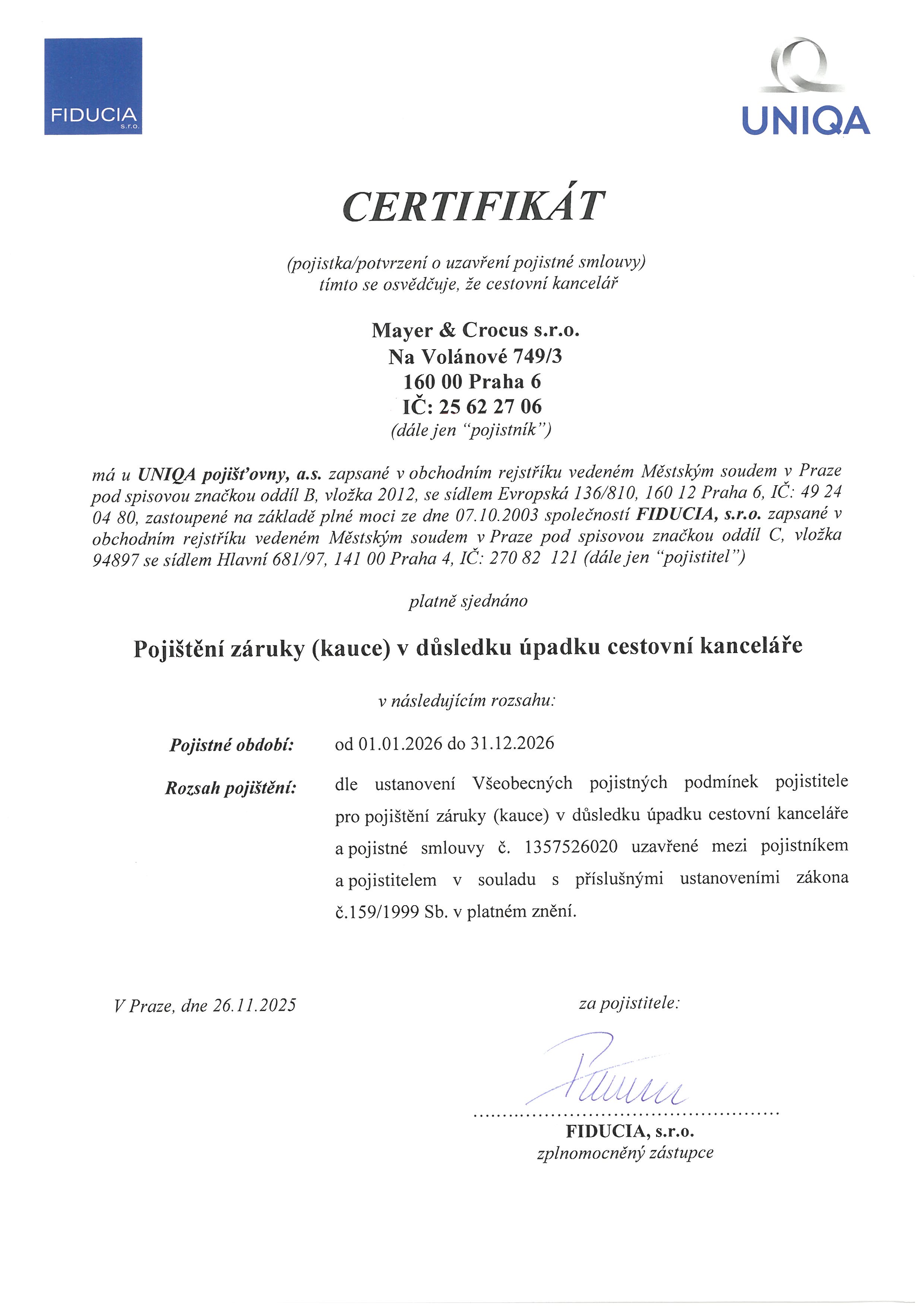 Cestovní smlouva vpisovací ke stažení: Všeobecné podmínky ke stažení: Certifikát Dokumenty pro klienty, kteří si přikoupili cestovní pojištění od pojištovny Uniqa:Dárkové poukazy ke stažení: