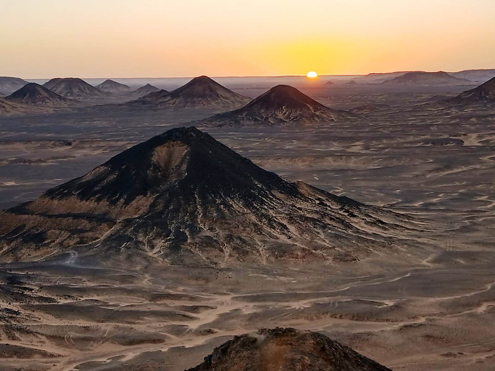 5. den: Přejezd do ČERNÉ POUŠTĚ s písečnými dunami, černými vulkanickými vrcholy a barevnými vápencovými skalami, výstup na některý z kuželovitých vrcholů s výhledy do okolí. Zastávka v KŘIŠŤÁLOVÝCH HORÁCH - skalní oblouk a množství nádherných krystalů. Duny a skály v AQABATU (jedna z krajinově nejkrásnějších oblastí Západní pouště).